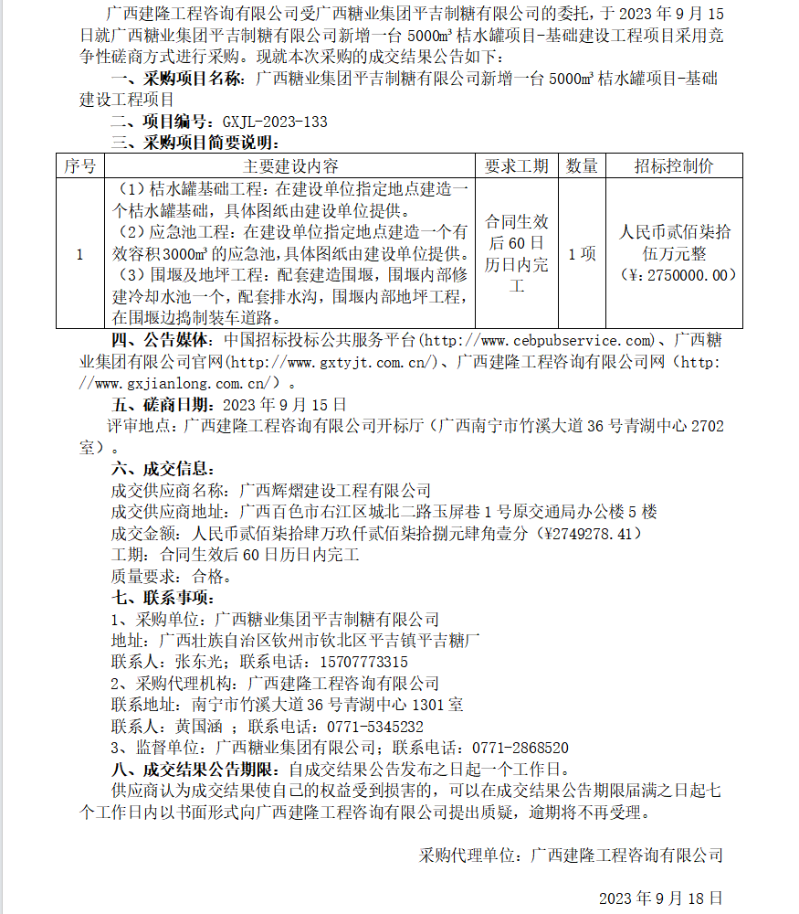 上一篇:广西建隆工程咨询有限公司关于广西糖业集团红河制糖有限公司2023年宁静环保小技改项目-等压罐、气送罐更换项目竞争性商量通告
